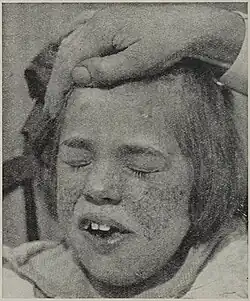 - Scottish dermatologist John James Pringle, working in London, described a 25-year-old woman with subnormal intelligence, rough lesions on the arms and legs, and a papular facial rash. Pringle brought attention to five previous reports, two of which were unpublished.[20] Pringle's adenoma sebaceum would become a common eponym for the facial rash.