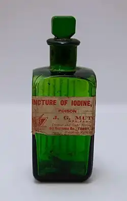 ![]() Various bottles of tincture of iodine from the former Soviet Union | |