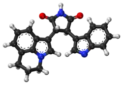 Tivantinib (ARQ197; by Arqule, Inc.) is an experimental small molecule anti-cancer drug. It is a bisindolylmaleimide that binds to the dephosphorylated MET kinase in vitro. (MET is a growth factor receptor.) Tivantinib is being tested clinically as a highly selective MET inhibitor.[1] However, the mechanism of action of tivantinib is still unclear.