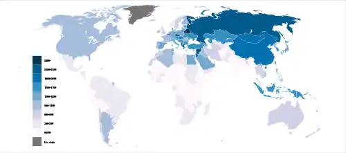 The worldwide average is 1,083 cigarettes per year per person above the age of 14.[11]