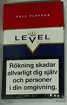 As of 30 January 2013, all cigarette packages must include graphical warning labels that show the detrimental effects on the health of long-term smokers, including COVID-19 (added in 2022).[9][10][11]