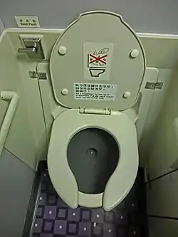A seatless toilet has no toilet seat. It may be much cleaner and easier to clean than toilet seats, while the structurally sound and hard rim of a porcelain toilet bowl still allows sitting.[5] Users not aware of the possibility to sit on this type of toilet may hover over.[6]