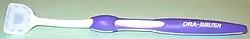 The top surface of the tongue can be cleaned using a tongue cleaner, a tongue brush/scraper or a toothbrush.[1][2] However, toothbrushes are not considered as effective for this purpose because they have a smaller width and are designed for brushing teeth, which have a solid structure unlike the spongy tissue of the tongue.[6] This can reduce its ability to remove debris and microorganisms.[6] Some toothbrush designs have projections on the back of their heads to act as a tongue cleaner.[1]