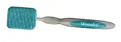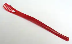 A tongue cleaner (also called a tongue scraper or tongue brush) is an oral hygiene device designed to clean the coating on the upper surface of the tongue. While there is tentative benefit from the use of a tongue cleaner it is insufficient to draw clear conclusions regarding bad breath.[1]