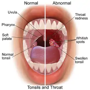 - ↑ 1.0 1.1 1.2 "Tonsillitis". PubMed Health. Archived from the original on 7 January 2017. Retrieved 30 September 2016.