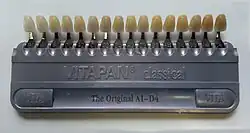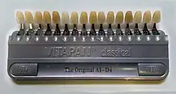 VITA classical A1-D4 shade guide arranged according to chroma; A: red-brown, B: red-yellow, C: grey, D: red-grey