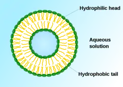 Liposomes contain a bilayer of phospholipids in a sphere shape that may exist as one or more than one bilayer of phospholipids. With this structure, its function is to trap hydrophilic or lipophilic drug molecules within the spherical bilayers.[4] The hydrophilic drug molecule sticks to the hydrophilic head since it is polar and favours water. On the other hand, the lipophilic drug molecules will be entrapped in the phospholipid tails of the bilayer due to its lipophilic nature.[6][4] With these mechanisms, liposomes will behave like carriers and carry the lipophilic or hydrophilic drug molecules into the stratum corneum and release them into deeper layers of the skin by interacting with the bilayers lipids found in stratum corneum.[15] The Use of liposome as carrier enhances the overall permeability of topical drug into the skin to reach the target site.[15][17] For example, a drug like amphotericin B, is used to treat fungal infections.[18] The drug is loaded into liposome and this carrier enhances the penetration of amphotericin B into the skin, regardless of its molecular weight.[19]