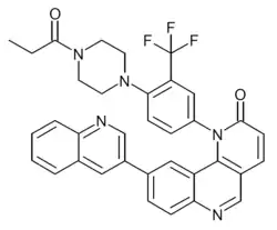 - ↑ Liu Q, Chang JW, Wang J, Kang SA, Thoreen CC, Markhard A, et al. (October 2010). "Discovery of 1-(4-(4-propionylpiperazin-1-yl)-3-(trifluoromethyl)phenyl)-9-(quinolin-3-yl)benzo[h][1,6]naphthyridin-2(1H)-one as a highly potent, selective mammalian target of rapamycin (mTOR) inhibitor for the treatment of cancer". Journal of Medicinal Chemistry. 53 (19): 7146–55. doi:10.1021/jm101144f. PMC 3893826. PMID 20860370.