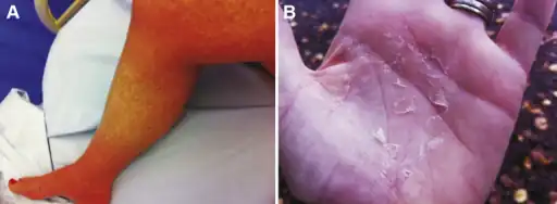 - Desquamation (especially of the palms and soles) 1–2 weeks after onset