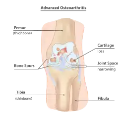 - ↑ Tanamas SK, Wluka AE, Pelletier JP, Pelletier JM, Abram F, Berry PA, et al. (December 2010). "Bone marrow lesions in people with knee osteoarthritis predict progression of disease and joint replacement: a longitudinal study". Rheumatology. 49 (12): 2413–2419. doi:10.1093/rheumatology/keq286. PMID 20823092.
