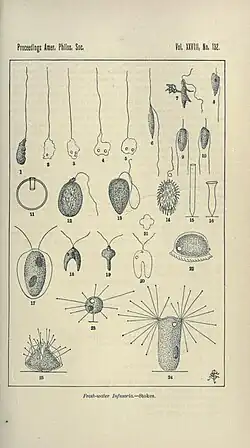- 1 2 3 4 5 6 Alfred C Stokes (1890). "Notices of New Fresh-Water Infusoria". Proceedings of the American Philosophical Society. 28 (132): 74–80. ISSN 0003-049X. JSTOR 983315. Wikidata Q106922786.