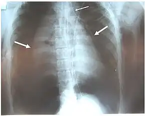 - ↑ 17.00 17.01 17.02 17.03 17.04 17.05 17.06 17.07 17.08 17.09 17.10 17.11 Euathrongchit J, Thoongsuwan N, Stern EJ (March 2006). "Nonvascular mediastinal trauma". Radiologic Clinics of North America. 44 (2): 251–8, viii. doi:10.1016/j.rcl.2005.10.001. PMID 16500207.