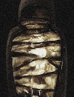 The 52.24 rénpò 人魄 "Human ghost (of a hanged person)" medicine refers to Chinese hun and po soul dualism between the hun 魂 "spiritual, ethereal, yang soul" that leaves the body after death and the po 魄 "corporeal, substantive, yin soul" that remains with the corpse. Li Shizhen explains, "Renpo is found in the soil under a person who has hanged himself or herself. It resembles soft charcoal. If the Renpo is not dug out in time, it will penetrate deep into the earth where it cannot be traced."[14] The Bencao gangmu compares a hanged person's soul with similar phenomena, "When a star descends to the earth it turns into a stone. When a tiger dies, his eyesight descends and turns into a white stone. Human blood will turn into phosphorus or jade when it drops to the ground." Li only gives one prescription, "Renpo pacifies the Heart and tranquilizes the soul and boldness. It treats convulsions, fright, and manic-depressive psychosis. Grind Renpo with water and take it by mouth."