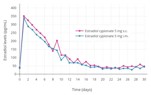 300. Kaiser R (September 1961). "[Estrogen excretion during the cycle and after injection of estradiol esters. A contribution to therapy with depot estrogens]" [Estrogen excretion during the cycle and after injection of estradiol esters. A contribution to therapy with depot estrogens]. Geburtshilfe und Frauenheilkunde (in German). 21: 868–878. PMID 13750804.