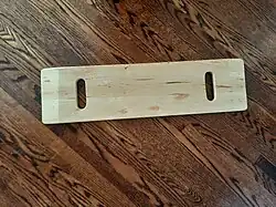 A transfer board, sliding board or slider board is a device designed for helping those with a physical disability to move from one surface (like a bed) to another (like a wheelchair). For safe use of a transfer board, the person who is being transferred should be able to participate in the move by sliding over the transfer board, there should be some cushioning in the buttock area for safe transfer.[1][2]