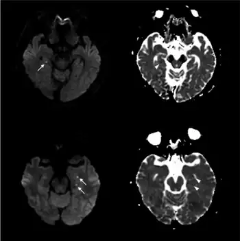 - ↑ Enzinger, C.; Thimary, F.; Kapeller, P.; Ropele, S.; Schmidt, R.; Ebner, F.; Fazekas, F. (2008). "Transient Global Amnesia: Diffusion-Weighted Imaging Lesions and Cerebrovascular Disease". Stroke. 39 (8): 2219–25. doi:10.1161/STROKEAHA.107.508655. PMID 18583561.