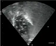The cause is generally unknown.[3] Risk factors may include an older mother, genetics, maternal diabetes, alcohol, smoking, and exposure to rubella during pregnancy.[4] It is often associated with other heart defects such as ventricular septal defect, atrial septal defect, or pulmonary stenosis.[3][5] Diagnosis may occur before or after birth via ultrasound.[3]