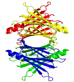 - ↑ Foss TR, Wiseman RL, Kelly JW (November 2005). "The pathway by which the tetrameric protein transthyretin dissociates". Biochemistry. 44 (47): 15525–33. doi:10.1021/bi051608t. PMID 16300401.