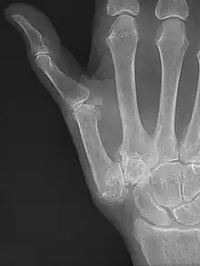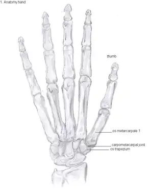 Risk factors include previous injury, excessive use, obesity, and inflammatory joint disease.[4][6] The underlying mechanism involves a breakdown of the cartilage within the carpometacarpal (CMC) joint.[5] Diagnosis is generally based on symptoms and X-rays.[4][1]