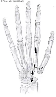 Showing the forces after trapeziectomy