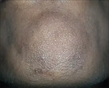 | Papules on the chin with goose skin appearance | |