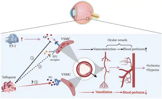 - ↑ Zhang, Xinyue; Zhou, Xiaoyu; Zhao, Yang; Yang, Xiang; Zhou, Dengming; Chen, Baihua; Duan, Xuanchu (1 December 2022). "Effects of Tafluprost on Ocular Blood Flow". Ophthalmology and Therapy. 11 (6): 1991–2003. doi:10.1007/s40123-022-00566-z. ISSN 2193-6528.