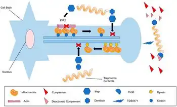 - ↑ Izard J, Samsonoff WA, Limberger RJ (February 2001). "Cytoplasmic filament-deficient mutant of Treponema denticola has pleiotropic defects". Journal of Bacteriology. 183 (3): 1078–84. CiteSeerX 10.1.1.488.5178. doi:10.1128/JB.183.3.1078-1084.2001. PMC 94976. PMID 11208807.