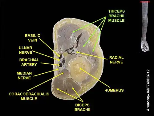 - ↑ Bekler H, Wolfe VM, Rosenwasser MP (January 2009). "A cadaveric study of ulnar nerve innervation of the medial head of triceps brachii". Clinical Orthopaedics and Related Research. 467 (1): 235–8. doi:10.1007/s11999-008-0535-6. PMC 2600974. PMID 18850256.