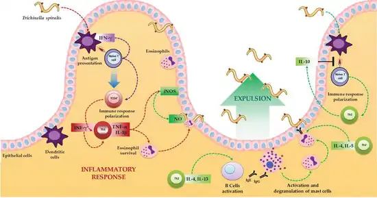 - ↑ Muñoz-Carrillo, José Luis; Maldonado-Tapia, Claudia; López-Luna, Argelia; Muñoz-Escobedo, José Jesús; LaTorre, Juan Armando Flores-De; Moreno-García, Alejandra (5 November 2018). "Current Aspects in Trichinellosis". Parasites and Parasitic Diseases. IntechOpen. ISBN 978-1-83880-128-1.