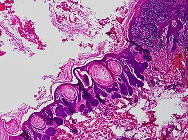 - ↑ 1.0 1.1 1.2 1.3 1.4 1.5 DE, Elder; D, Massi; RA, Scolyer; R, Willemze (2018). "3. Appendageal tumours: Trichofolliculoma". WHO Classification of Skin Tumours. Vol. 11 (4th ed.). Lyon (France): World Health Organization. p. 206. ISBN 978-92-832-2440-2. Archived from the original on 2022-07-11. Retrieved 2022-08-31.