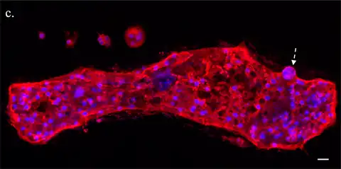 Trichosphaerium is a genus of amoebae characterized from other Amoebozoa by a multiporous test and a specialized non-motile pseudopodium, known as a dactylopodium, shaped like a digit. The dactylopodium is considered a sensory structure. Its morphology, behavior and life cycle are extraordinary in comparison with other protists. During its poorly understood life cycle, Trichosphaerium undergoes dramatic changes in shape and size. They can grow from as small as 10 μm to giant cell sizes of over 1 mm, observable by the naked eye. They can display such varied recognizable morphotypes that they can be easily mistaken with other species of amoebae.[2]