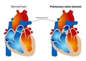 - ↑ "Pulmonary valve stenosis - Diagnosis and treatment - Mayo Clinic". www.mayoclinic.org. Retrieved 2021-08-07.