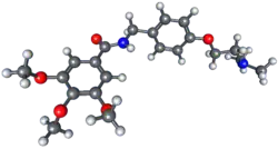 Trimethobenzamide, sold under the brand name Tigan among others, is a medication used to treat nausea and vomiting.[1] This includes that due to surgery and gastroenteritis.[1] It is taken by mouth or by injection into a muscle.[1] Onset occurs within 40 minutes and lasts up to 4 hours.[1]