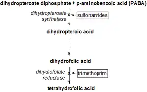 - ↑ Brumfitt, W; Hamilton-Miller, JM (December 1993). "Reassessment of the rationale for the combinations of sulphonamides with diaminopyrimidines". Journal of Chemotherapy. 5 (6): 465–9. doi:10.1080/1120009X.1993.11741097. PMID 8195839.
