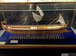 While the exact origin of the anatomical term trochanter is uncertain, multiple possible connections could be suggested. One possibility is that the term was derived directly from the Greek roots without influence from the maritime meaning, with the name referencing the trochanter’s role in enabling swift movement through muscle attachment. Alternatively, the term may have been influenced by the Greek τροχαντήρ (trochantḗr), which referred to the protrusions on the stern of triremes that served as attachment points for ropes and sails. In a similar manner, the anatomical trochanters are prominent bony projections that serve as key attachment sites for muscles. Later usage came to include the femoral neck.[2]