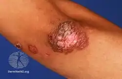 - ↑ Tobin, Ellis H.; Warda, Katerina; Gropper, Charles; Apple, Aurel; Vadakekut, Elsa S. (2025). "Cutaneous Tuberculosis". StatPearls. StatPearls Publishing. Archived from the original on 2021-08-28. Retrieved 2025-09-06.