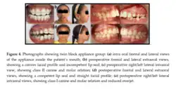 {{cite web}}: CS1 maint: multiple names: authors list (link) - ↑ Pattanaik, Snigdha; Puvvula, Navya; Mohammad, Noorjahan (April 2018). "Accelerating Treatment of Skeletal Class II Malocclusion using Fixed Twin Block Appliances". International Journal of Clinical Pediatric Dentistry. 11 (2): 146–150. doi:10.5005/jp-journals-10005-1501. ISSN 0974-7052. PMC 6034051. PMID 29991869.
