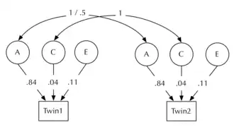 - ↑ Coventry, W. L.; Keller, M. C. (June 2005). "Estimating the Extent of Parameter Bias in the Classical Twin Design: A Comparison of Parameter Estimates from Extended Twin-Family and Classical Twin Designs". Twin Research and Human Genetics. 8 (3): 214–223. doi:10.1375/1832427054253121. PMID 15989749.