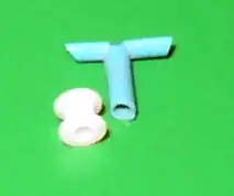 Tympanostomy tubes of varying size and shape. Examples of short-term use grommet (left) and long-term use T-shape (right).