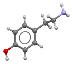 - ↑ Synonyms and alternative names include: 4-hydroxyphenethylamine, para-tyramine, mydrial, and uteramin; the latter two names are not commonly used. The IUPAC name is 4-(2-aminoethyl)phenol.