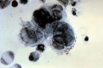 6. Microscopic examination using an oil immersion lens. (Look for multinucleated giant cells)[7]