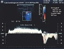 - Manual squeezing and releasing – the examiner can compress the vein below the probe, which will push the blood in its normal antegrade direction. On releasing the pressure, if the valves are incompetent the flow will appear as a retrograde flow or reflux, greater than 0.5 sec.[2]