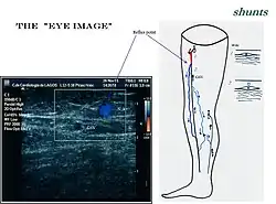 - ↑ In venous circulation, a shunt is the situation where blood circulates from one vein (leak point) to another and from that one to the former (re-entry point), creating a pathway in a vicious circle between two veins, one with a physiologic flow and the other with a retrograde flow.