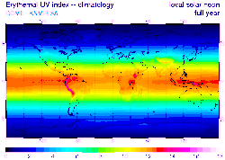 Average UV at noon 1996-2002 (European Space Agency)