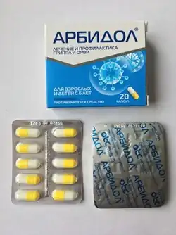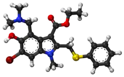 - ↑ Glushkov RG, Gus'kova TA, Krylova LI, Nikolaeva IS (1999). "[Mechanisms of arbidole's immunomodulating action]". Vestnik Rossiiskoi Akademii Meditsinskikh Nauk (in Russian) (3): 36–40. PMID 10222830.