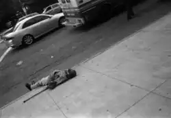 | An unconscious male human lying in a recovery position | |