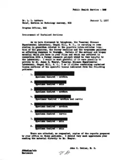 Between 1960 and 1971, the Department of Defense funded non-consensual whole body radiation experiments on mostly poor and Black cancer patients, who were not told what was being done to them. Patients were told that they were receiving a "treatment" that might cure their cancer, but the Pentagon was trying to determine the effects of high levels of radiation on the human body. One of the doctors involved in the experiments was worried about litigation by the patients. He referred to them only by their initials on the medical reports. He did this so that, in his words, "there will be no means by which the patients can ever connect themselves up with the report", to prevent "either adverse publicity or litigation".[105]