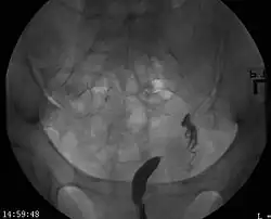 | A unicornuate uterus as seen on a hysterosalpingogram | |