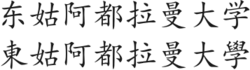 ![]() Universiti Tunku Abdul Rahman in Simplified Chinese (top) and Traditional Chinese character (below) | |||||||||||||||||||||