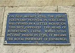 Plaque on the site of the first Royal Infirmary